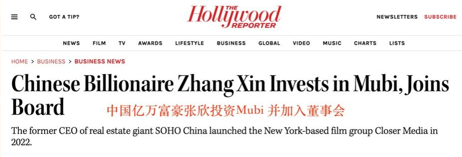 据了解,张欣投资了美国的流媒体平台Mubi,虽然没有公布金额,但是应该不低,张欣直接进入董事会。